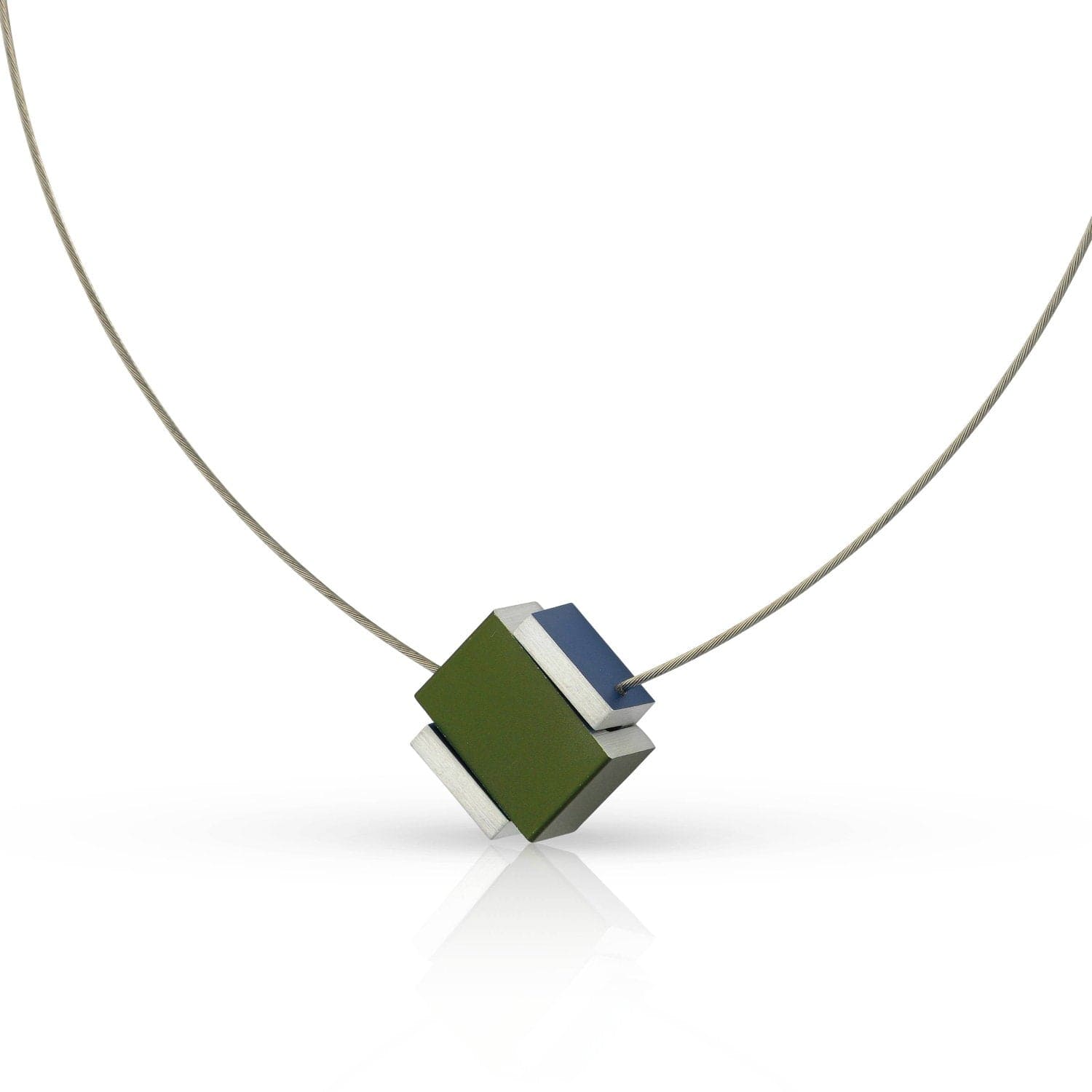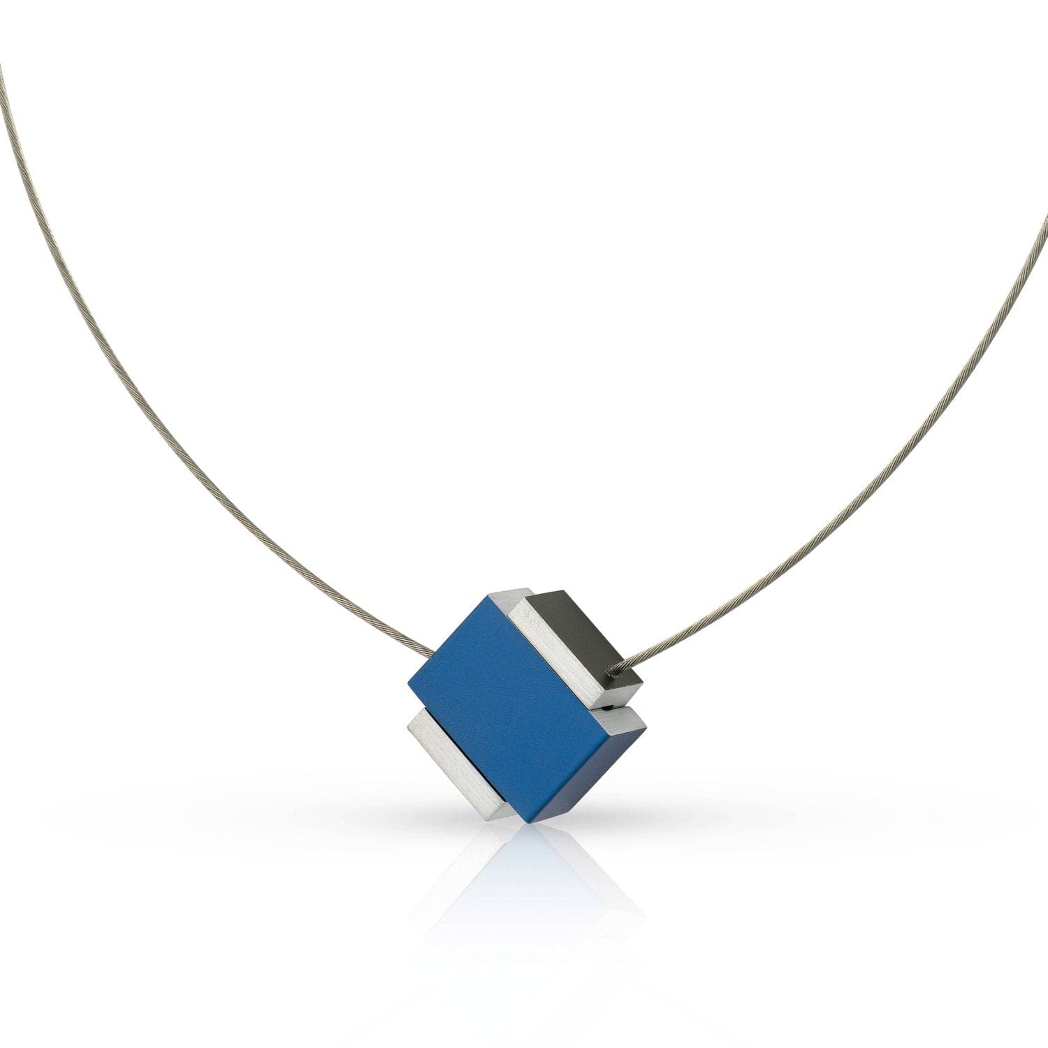 Eine Halskette, die zu jedem Outfit passt und dezent hervorsticht. Die Halskette fällt in V-Form. Halskette aus einem offenen Quadrat mit einem darin platzierten geschlossenen Quadrat mit Magnetverschluss. Die Magnete ziehen sich gegenseitig an und diese Halskette schließt mit einem „Klick“. Diese Halskette wird geöffnet, indem der Würfel vom Quadrat entfernt wird. Die Halskette besteht aus einem sanft fallenden Kettendraht aus Edelstahl, matt und hochglänzend. Sie können diese Halskette endlos mit anderen matten und glänzenden silberfarbenen Artikeln aus unserer Kollektion kombinieren. Zeitlos und schlicht im Design.